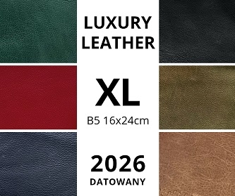 Skórzany 2 planer 2026 B5 (XL 16x24cm) Organizer, Kalendarz, Notatnik; oprawa: skóra naturalna KARMINOWA CZERWIEŃ